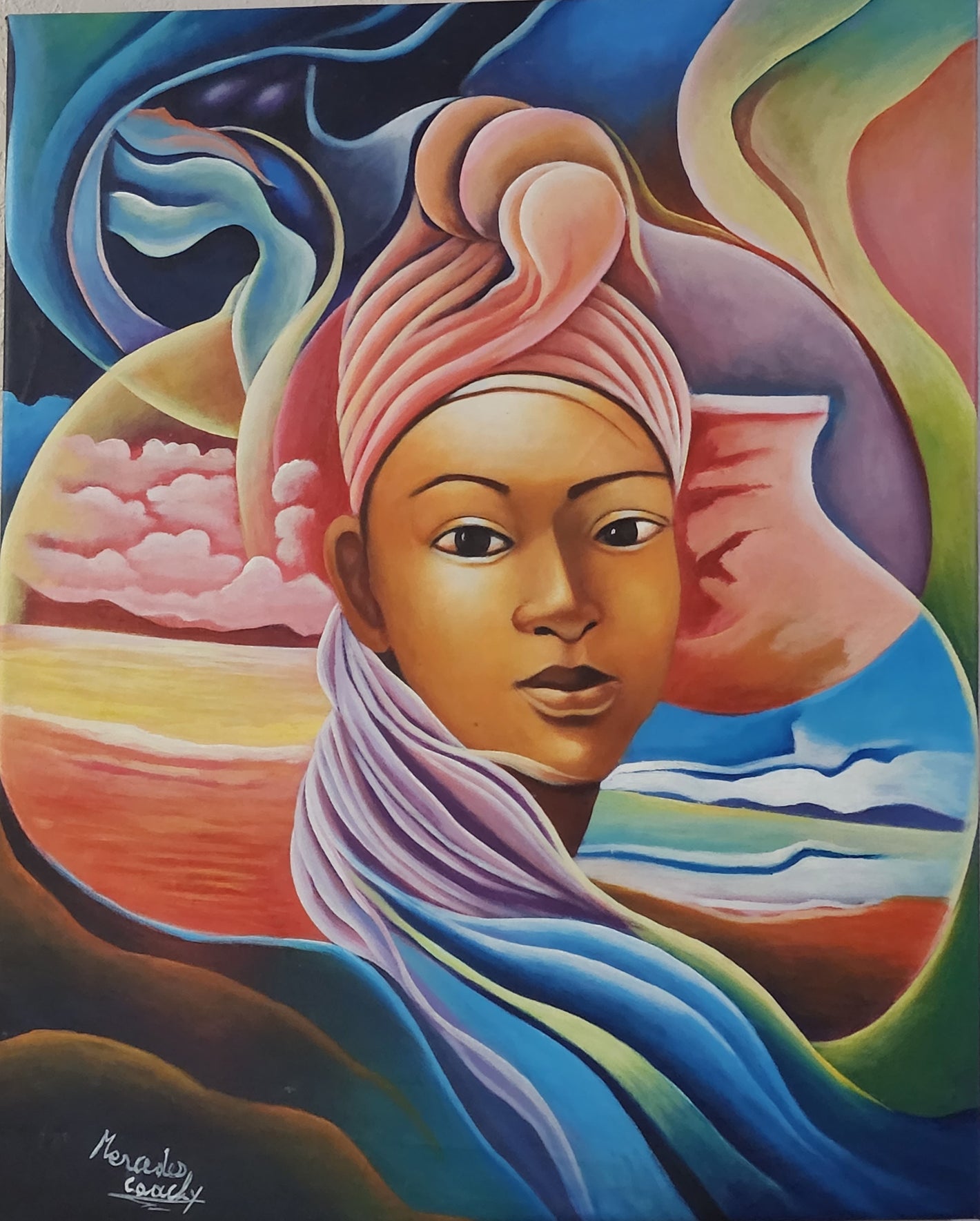 This painting describes Haitian reality as a richness of historic dating back thousands of years, with various cultures and movements contributing to its development.